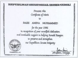 1986 - THE SENATORIAL INNER CIRCLE (Certificate of Merit Award recipient) D.C.