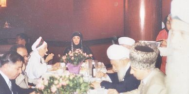 Washington D.C., 1998 - After the eight speeches given by Dr. SaLee' Amina during the International Islamic Unity Conference, the Speakers joined together for a banquet in honor of the President of Chechnya.
