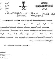 1981 - COMMENDATION FROM KING OF SAUDI ARABIA - His Majesty King Khalid Bin Abdul Aziz Al-Saud (at that time, never before given to an American, nor a woman)