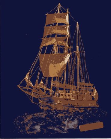 6. SCULPTURE - SAILING SHIP - 18 kt gold, with circular portrait on sail (18”)